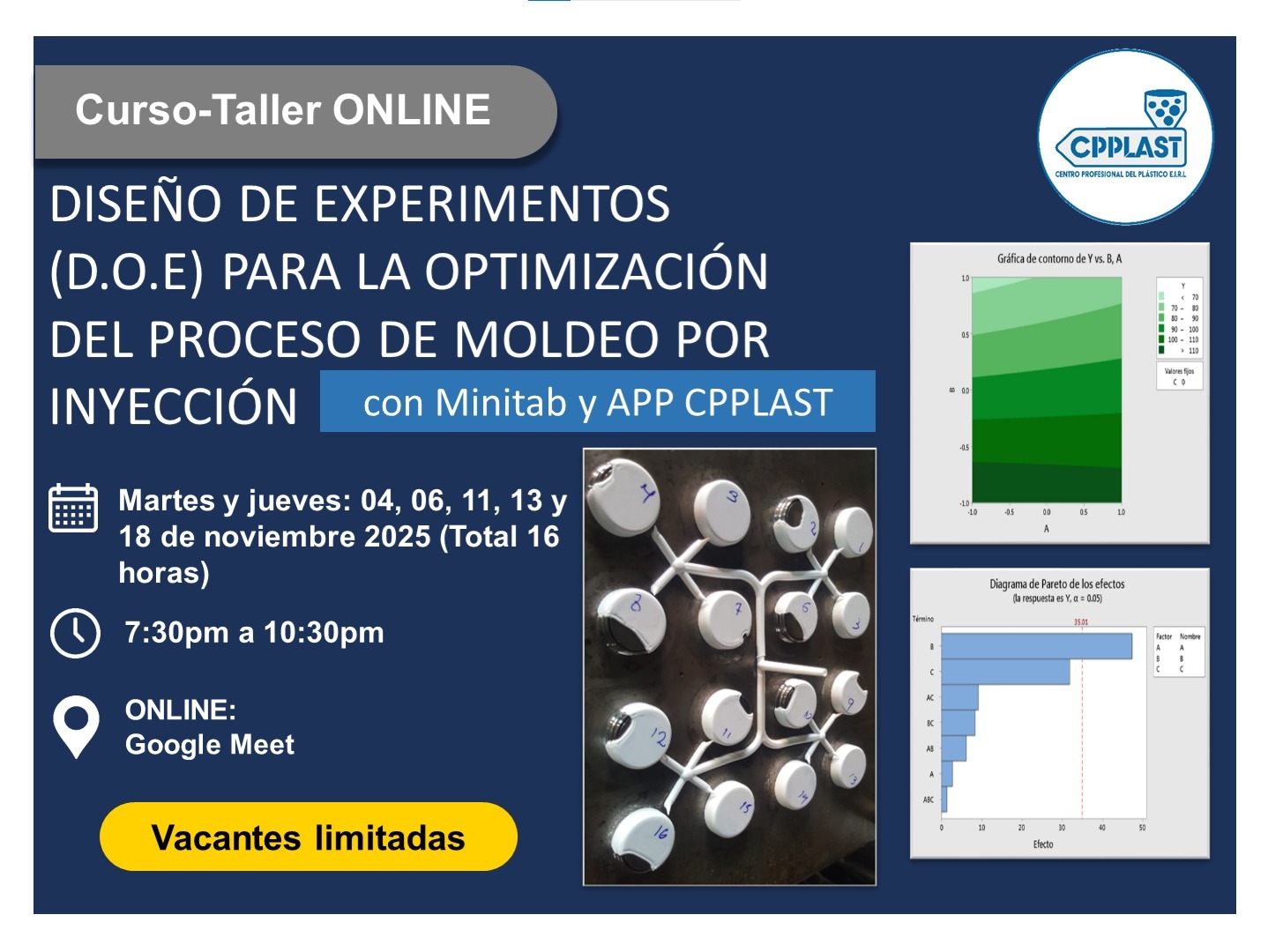 Curso Online de Diseño de Experimentos para Optimizar el Proceso de Moldeo por Inyección con Minitab.