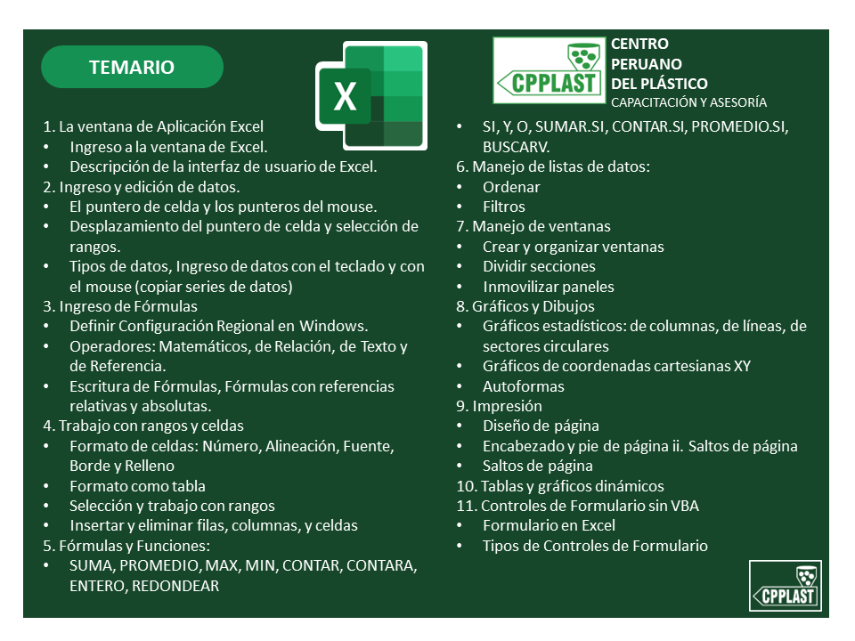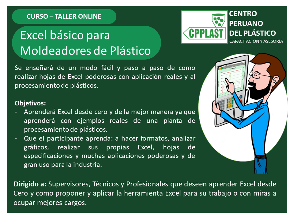 - Aprenderás Excel con aplicaciones reales de una planta de procesamiento de plásticos, estas hojas Excel serán con aplicaciones con nivel básico.